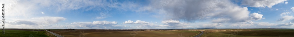 The stormy clouds on sunset panorama