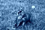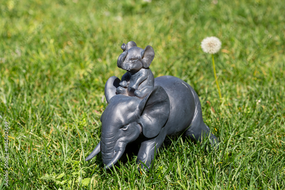 Elephant Statue in a garden with green plants