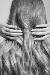 Beautiful strong hair of a woman, strengthening and restoring the hair roots. Beautiful manicure on the hands of a girl