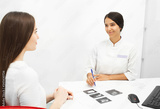 Gynecologist consultation, women's health treatment and diagnosis of diseases of the reproductive system. Checking the female health, exam ovaries, and uterus in the gynecology office.