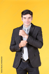 Portrait of businessman on yellow background using as background professional business people, successful business man consultant concept.