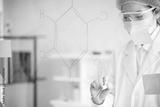 Scientist writing formula chemistry in laboratory with copy space using as background science, medical , education, biology, chemistry concept.