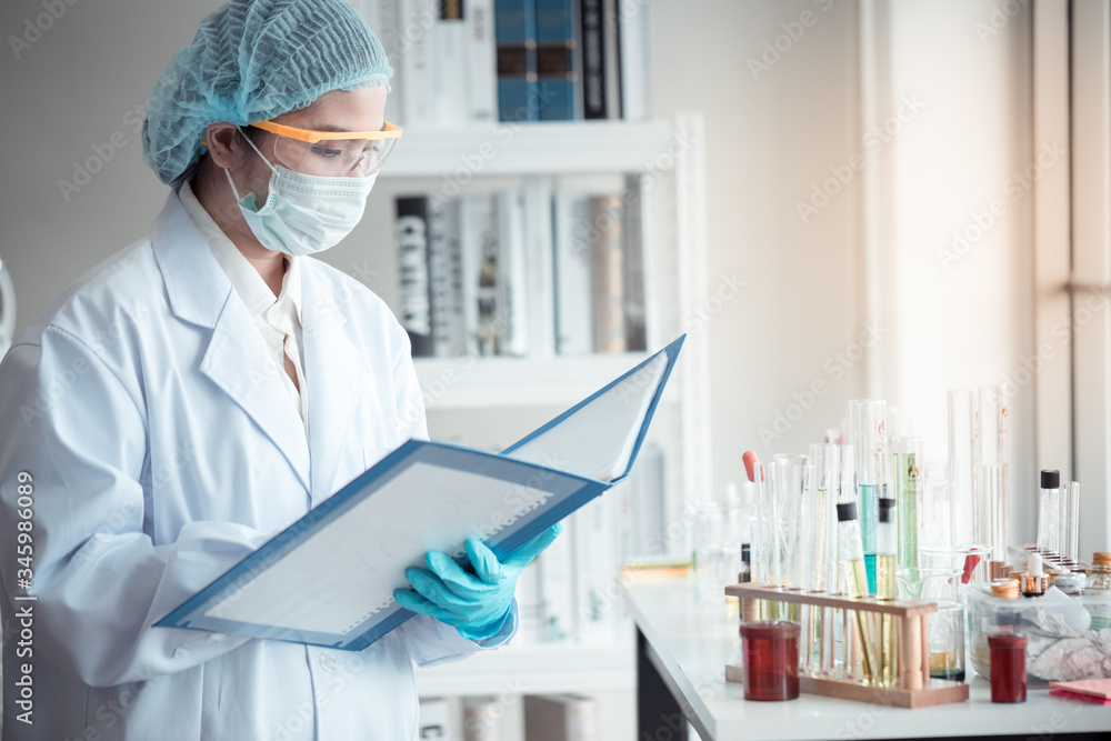 Scientist looking through folder analsyt in laboratory with copy space using as background science, medical , education, biology, chemistry concept.