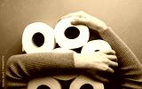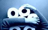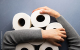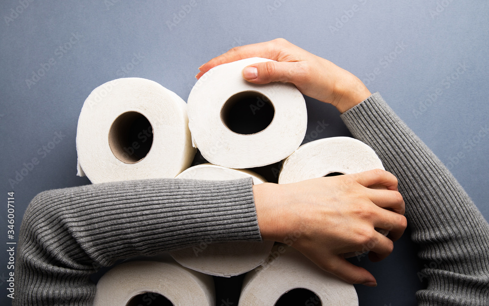 Sold out stocking up toilet paper. Covid - 19 home quarantine. Panic stockpiling due to coronavirus.