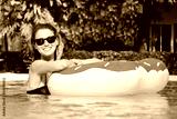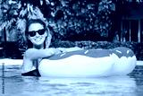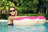 Beautiful woman with inflatable donut in swimming pool