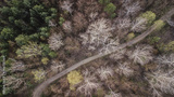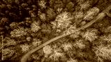 aerial veiw of empty rural road in forest. drone shot. toned picture