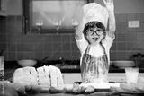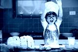 Happy cute asian little boy in apron preparing baking the dough in kitchen room at home