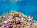colorful corals and exotic fishes at the bottom of the red sea. beautiful natural summer background