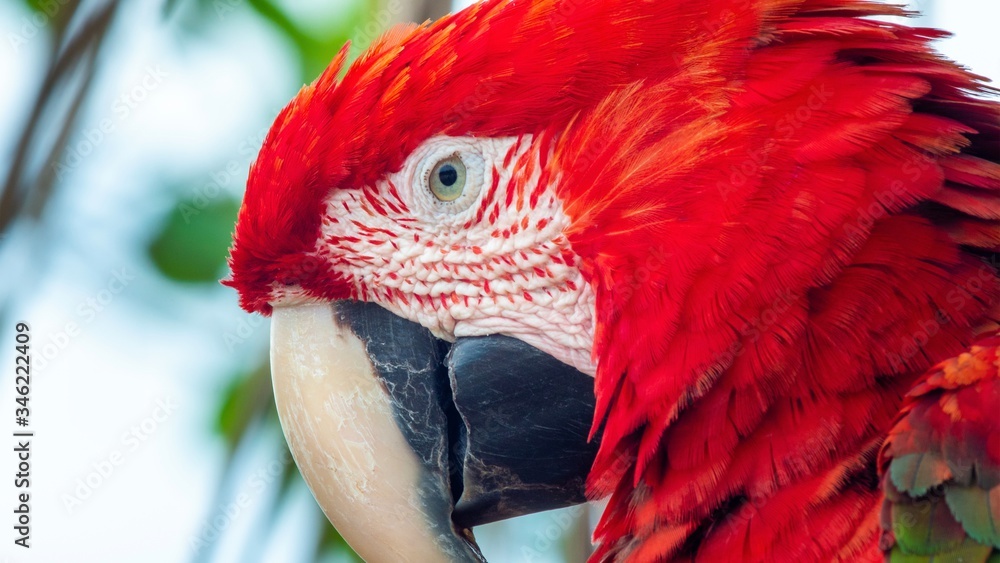 Red parrot Scarlet Macaw, Ara Macaw in the jungle of Peru, large beautiful colorful
