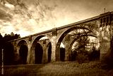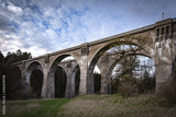 Mosty kolejowe na Suwalszczyźnie w wiosenny wieczór na tle nieba z chmurami