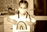 Thank to NHS. Kid in protective mask painting the rainbow during Covid-19 quarantine at home. coronavirus covid-19 outbreak.