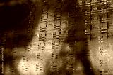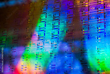 Close up of a silicon wafer of SIM computer chips.