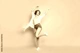 Full length body size view of her she nice attractive lovely pretty cheerful cheery positive girl dancing having fun chill out bachelorette air wind blowing isolated over pink pastel color background