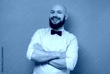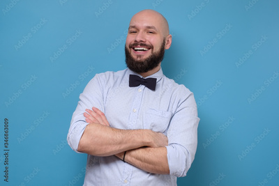 Casual caucasian man with beard standing with arms crossed smiling at camera
