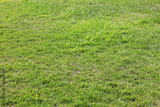 Green grass field pattern in bad condition. Grass texture background in need of maintenance, old used patchy green lawn structure