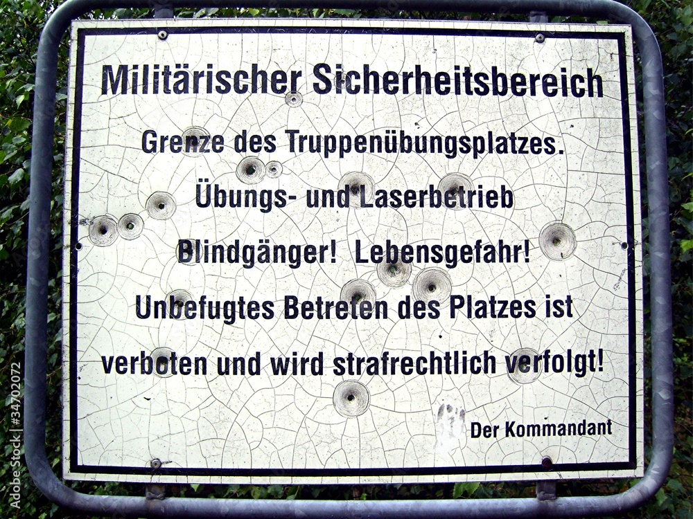 Hinweisschild in der Nähe eines Truppenübungsplatzes