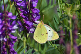 Pale clouded yellow butterfly. Colias hyale, the pale clouded yellow butterfly feeding on meadow