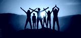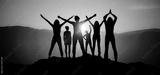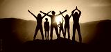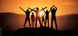 Weibliche Silhouetten beim Workout bei Sonnenaufgang