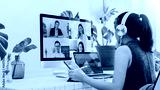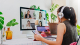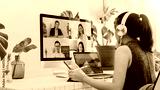 Asian business woman work from home with laptop, tablet and computer on table with meeting online and video conferencing.Concept of social distancing to stop the spread disease of Corona virus.