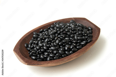 Pile of raw Brazilian Black Beans in a bowl. Also know as 'Feijao'