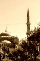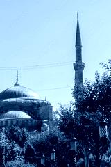Ottoman Turkish style mosque minaret as Religious Muslim temple architecture