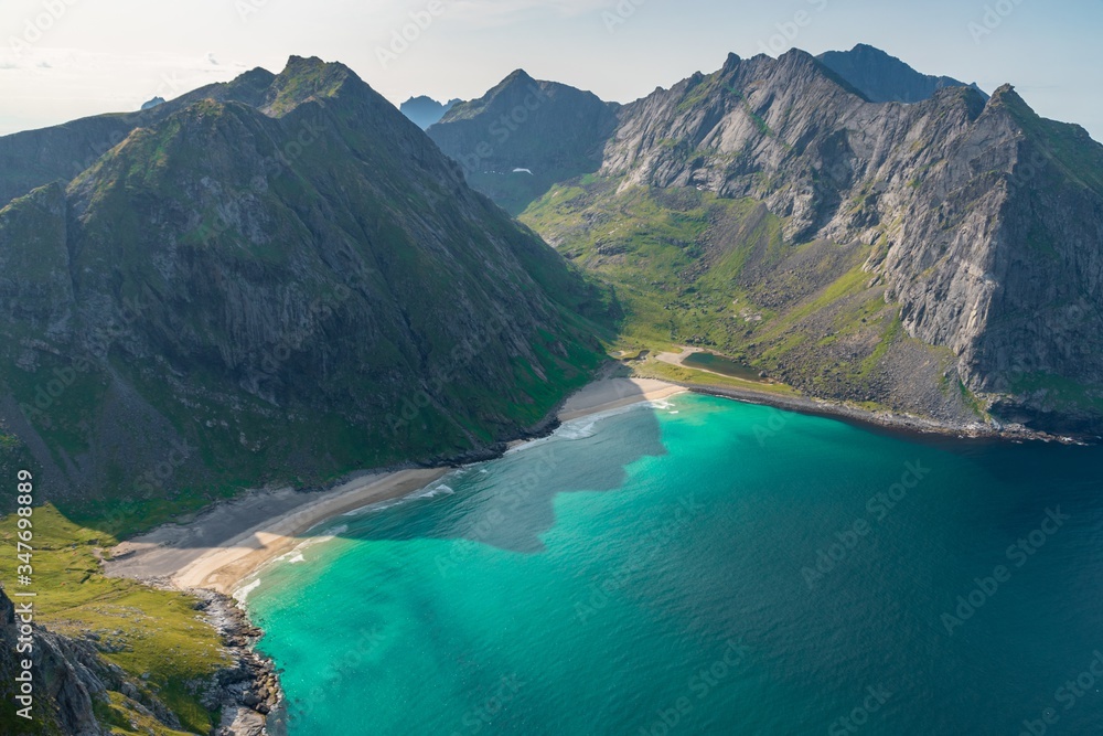 Mesmerizing scene of Kvalvika beach located in Norway on a sunny day
