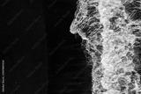 Black sand beach in Bali, Indonesia. Beach on aerial top view with ocean waves