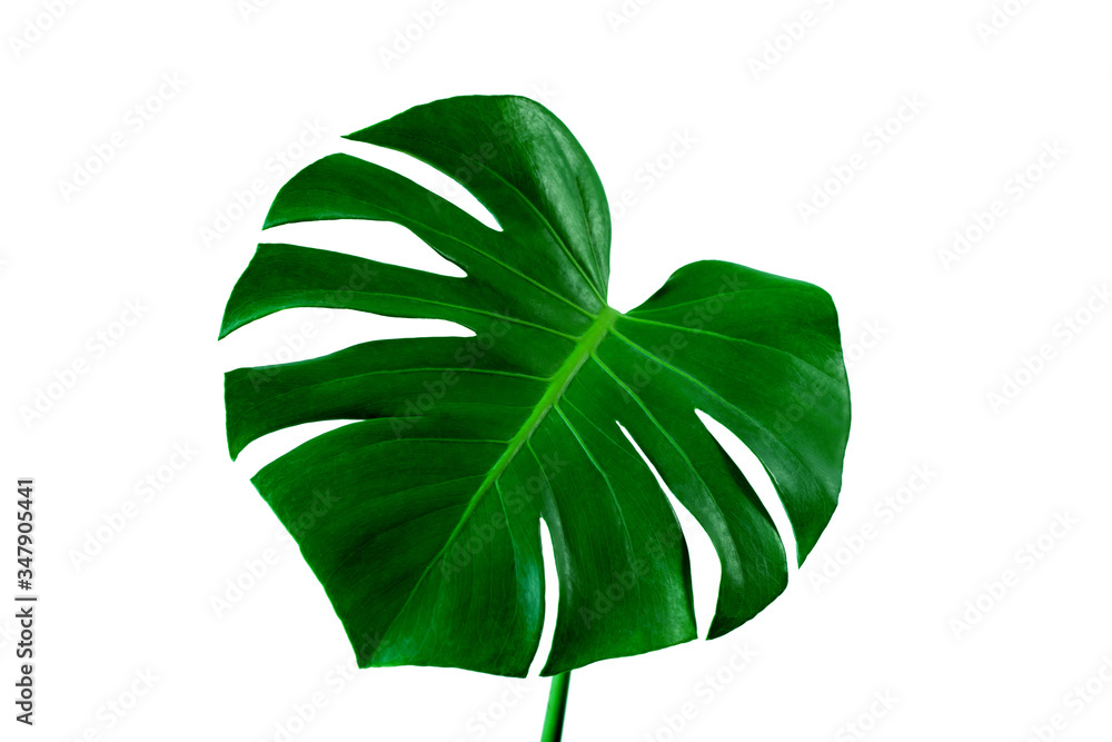 Beautiful Tropical Monstera leaf isolated on white background with clipping path for design elements, Flat lay
