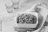 Quinoa Quinua salad with tomatoes and herbs in white bowl
