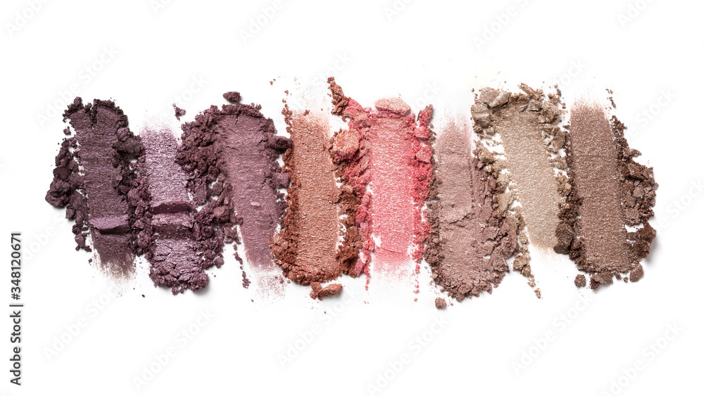 Close-up of make-up swatches. Smears of crushed shiny color eye shadow