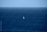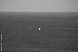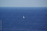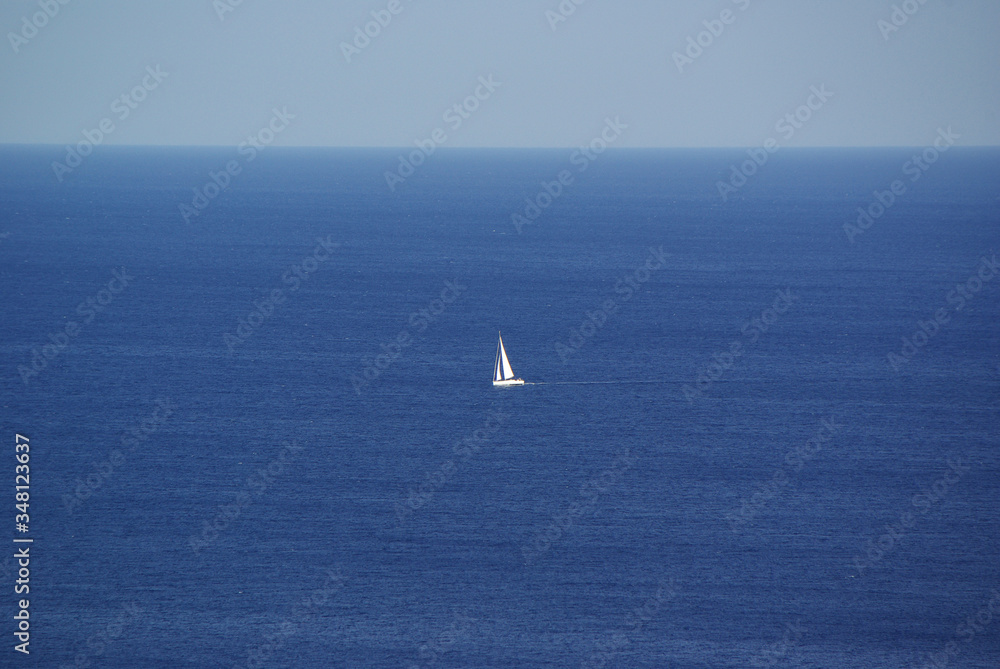 White sailboat in the distance on the blue sea