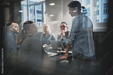 Businesspeople meeting with their manager inside of an office bo