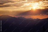 Awesome sunset in the alpine highlands. Location place Carpathian mountains, Ukraine, Europe.
