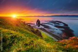 Charming view of the Atlantic ocean at dawn. Location place famous Hvitserkur rock, Vatnsnes peninsula, Iceland, Europe.