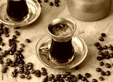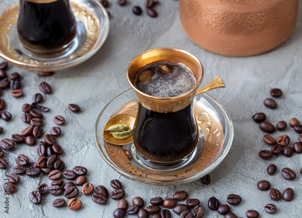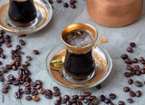 Middle Eastern-Style black coffee with cardamom in armudu glass