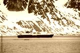 Expedition ship in Arctic sea, Svalbard. Passenger cruise vessel. Arctic and Antarctic cruise.