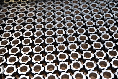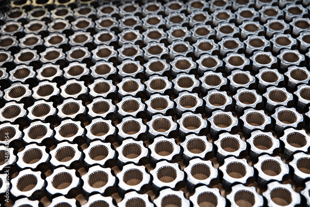 Machine parts. Axles on a factory stack