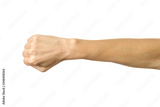 Hand clenched in a fist. Woman hand gesturing isolated on white