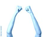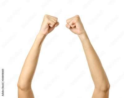 Raised hands. Woman hand gesturing isolated on white