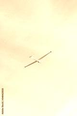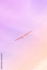 Small glider flying against the pink sky, concept of dream, happy future and positive outlook on life