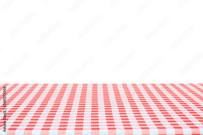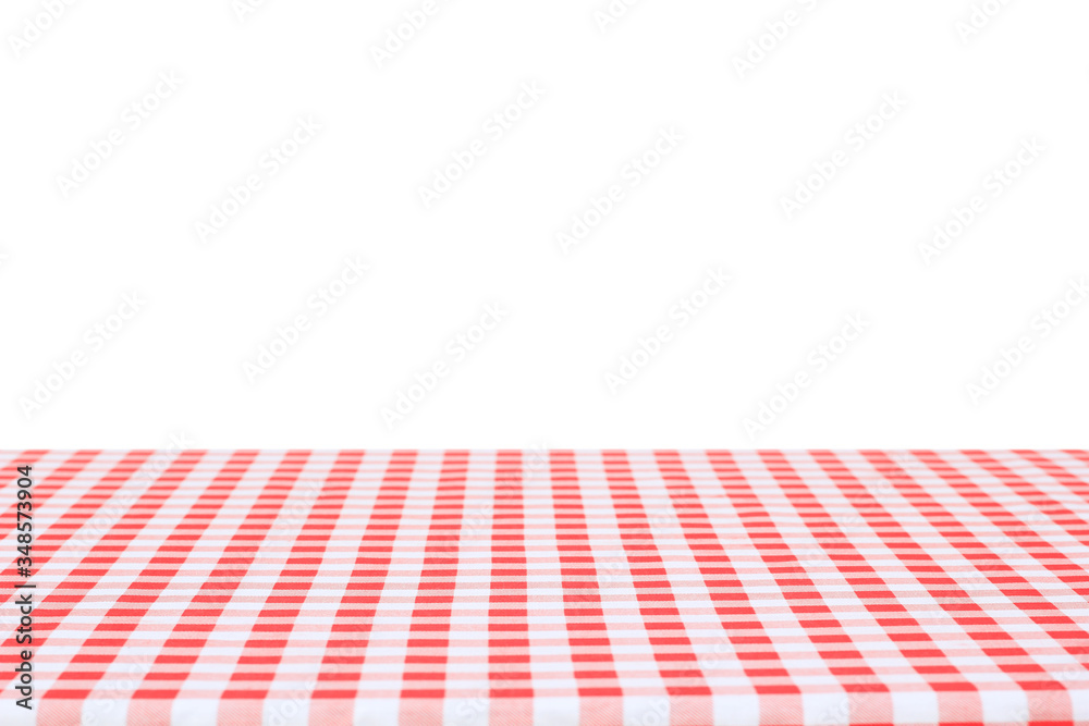 red and white checkered tablecloth on white background.