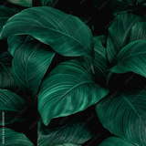 leaves of Spathiphyllum cannifolium, abstract green texture, nature background, tropical leaf