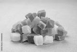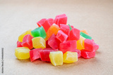 Turkish delight (lokum) concept: Side view of pyramid stacked colorful sweet confections for textured background
