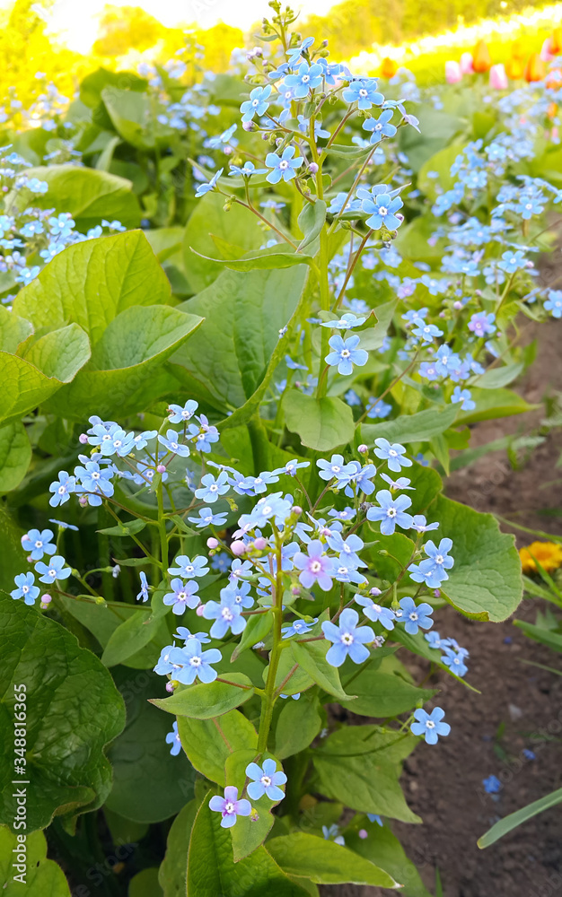 Small blue flowers of Forget-me-not in park
