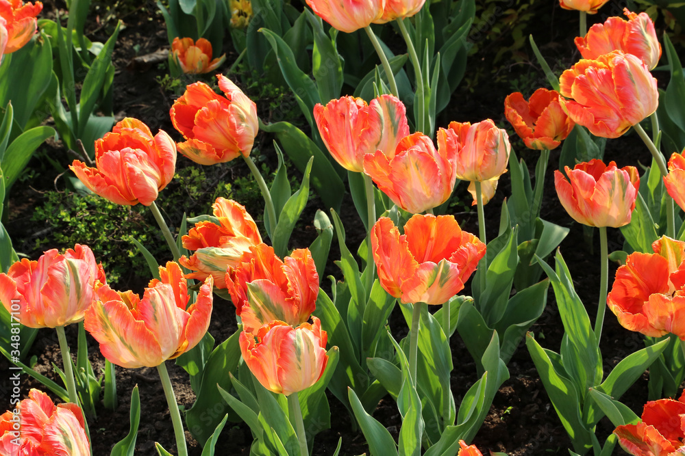 Beautiful bright tulips in the sunlight