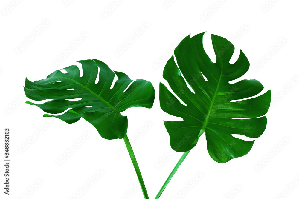 Beautiful Tropical Monstera leaf isolated on white background with clipping path for design elements, Flat lay