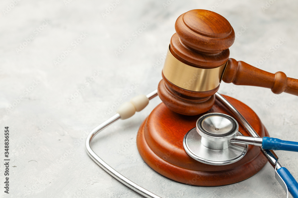 Judge gavel and stethoscope. The law in medicine, the sentence on medical negligence