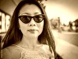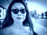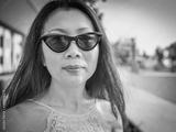 Asianl female model, close-up face in sunglasses. Summer street shooting.