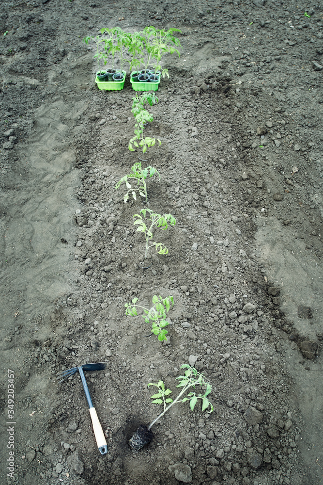The young tomato seedling ready to plant in the ground.