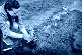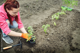 The young tomato seedling ready to plant in the ground.